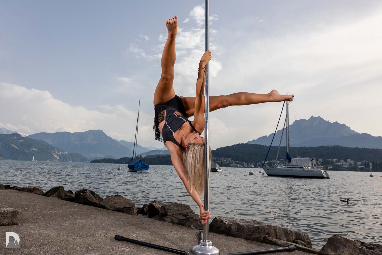 Nachdem ich bereits einige Indoor-Poleshootings gemacht hatte, war ich auf der Suche nach einer neuen Herausforderung, die die Kraft und Eleganz von Pole Fitness in Verbindung mit der Natur zur Geltung bringt. Die Idee für ein Pole Dance Shooting am Vierwaldstättersee, mit dem Pilatus im Hintergrund, war geboren. Doch wie bekommt man eine mobile Polestange und ein professionelles Model für ein Outdoor-Shooting?