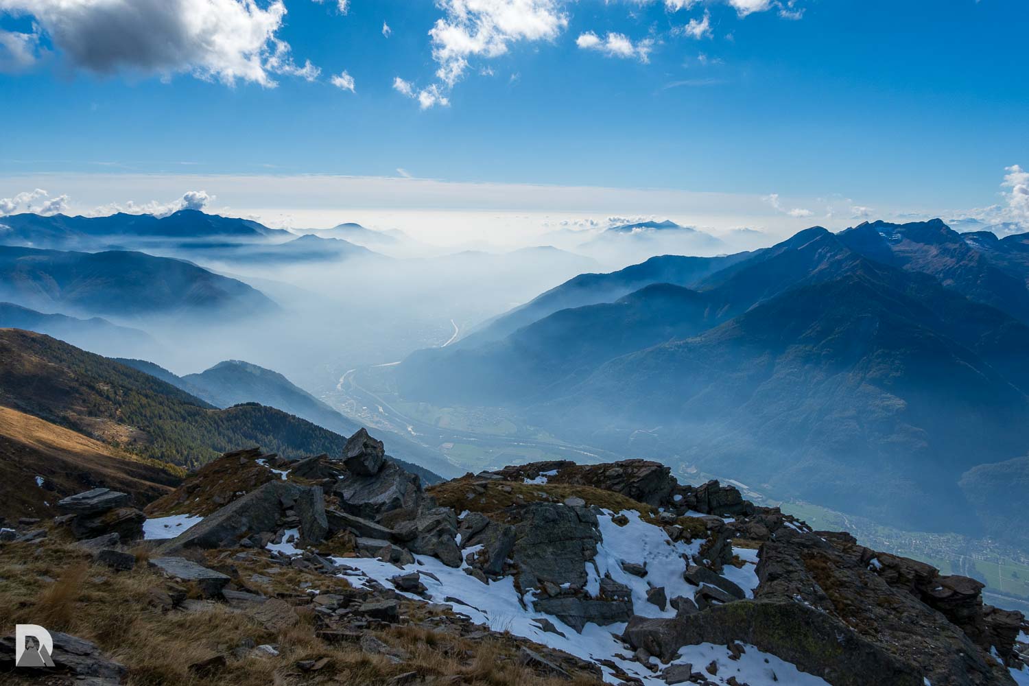 Der Himmel war klar, die Luft frisch. Der Abstieg ins Tal war leicht und bot noch einmal herrliche Ausblicke.