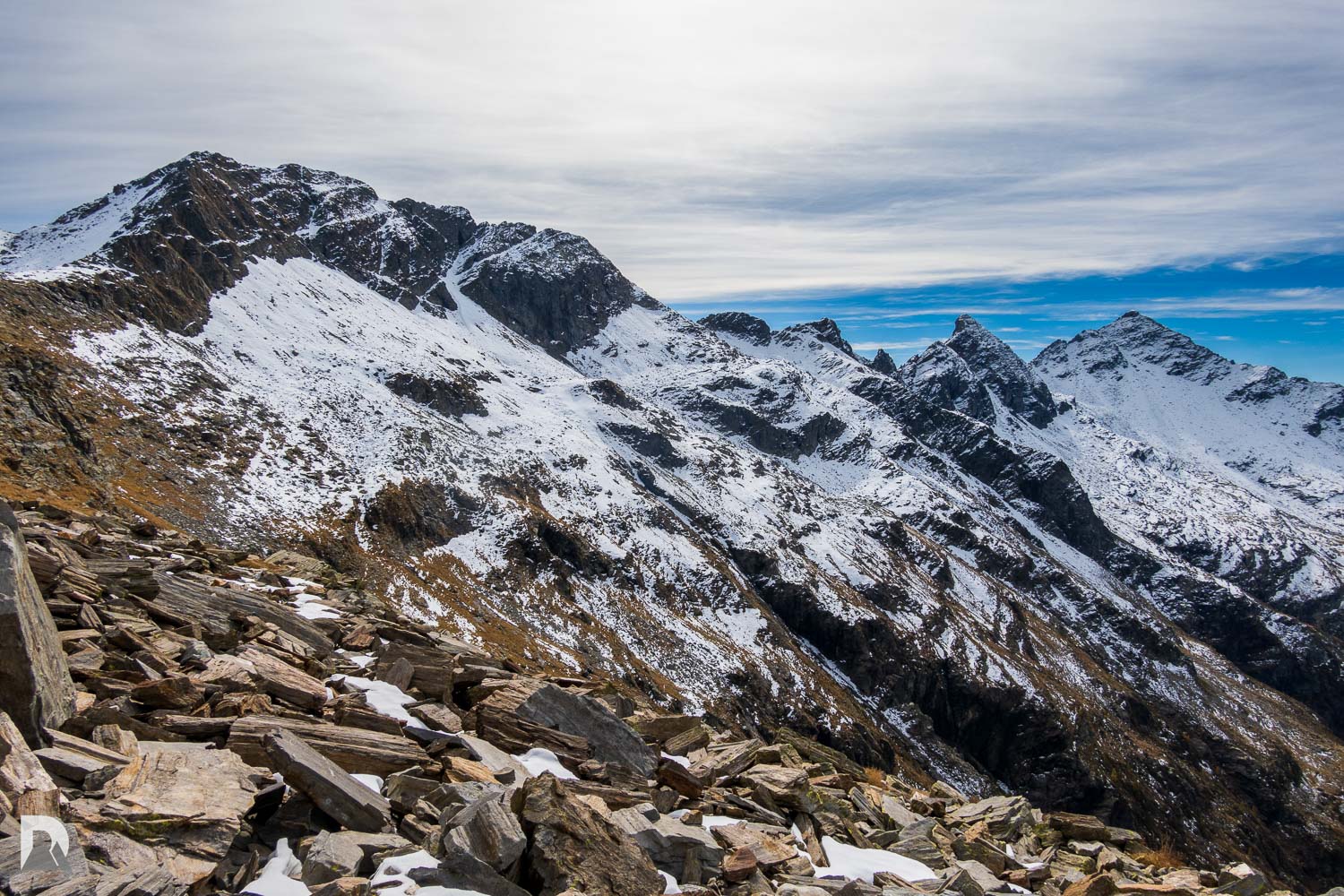 Ohne Gepäck machten wir uns auf den Weg zum Passo di Mem. Der Pizzo di Claro wirkte von dort aus immer noch weit entfernt, doch wir beschlossen, den Südgrat direkt anzugehen – so weit, wie es eben ging.
